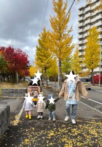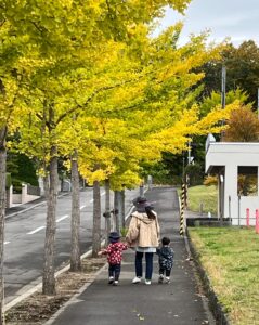 保育園の前のイチョウの木は綺麗な黄色になっていますよ~😊