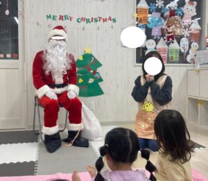 「どうやってきたの~?」 「どんな食べ物が好きなの~?」と お話を聞いた後はお楽しみのプレゼントタイムです🎁