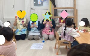 りすさん、ひよこさんは先生から手渡されたものを順番に張り付けていきました 「まだやりたい…!!」な子どもたちでした。