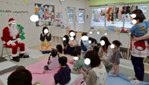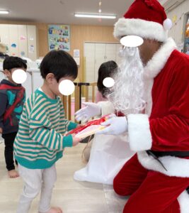 各クラスごとに分かれて順番に、サンタさんにプレゼントをもらって、記念撮影もできましたよ